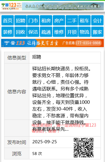 驿站招长期快递员,投柜员。要求男女不限,年龄体力够就行,心细,责任心强。待遇电话联系。另有多个成熟驿站出兑,地理位置优异,设备齐全,每天到货量1000左右,发货30-40件,收入稳定,不愁客源,带有屋内设备,接手能干就是挣钱。有意者联系吴先生13114587976请联系此号码吴先生17758895804 【电话咨询时,请一定说明在伊春信息网看到的,谢谢!】 |
