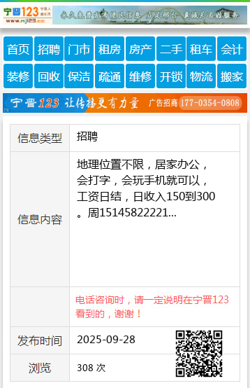 地理位置不限,居家办公,会打字,会玩手机就可以,工资日结,日收入150到300。周15145822221