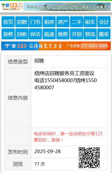 烧烤店招聘服务员工资面议电话15504580007烧烤15504580007