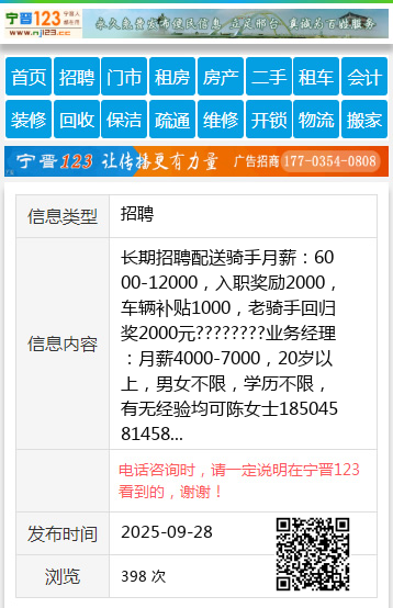 长期招聘配送骑手月薪:6000-12000,入职奖励2000,车辆补贴1000,老骑手回归奖2000元????????业务经理:月薪4000-7000,20岁以上,男女不限,学历不限,有无经验均可陈女士18504581458 【电话咨询时,请一定说明在伊春信息网看到的,谢谢!】 |