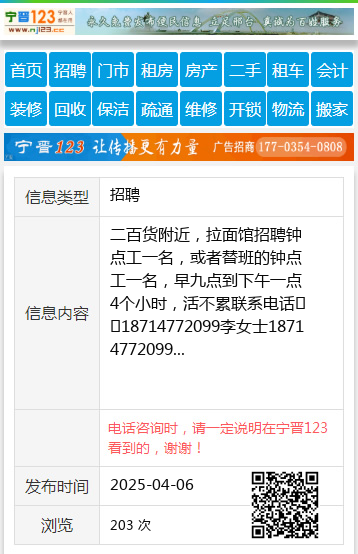 二百货附近,拉面馆招聘钟点工一名,或者替班的钟点工一名,早九点到下午一点4个小时,活不累联系电话☎️18714772099李女士18714772099 【电话咨询时,请一定说明在伊春信息网看到的,谢谢!】 |