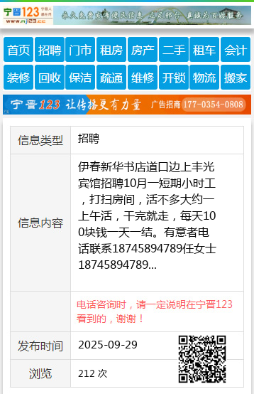 伊春新华书店道口边上丰光宾馆招聘10月一短期小时工,打扫房间,活不多大约一上午活,干完就走,每天100块钱一天一结。有意者电话联系18745894789任女士18745894789 【电话咨询时,请一定说明在伊春信息网看到的,谢谢!】 |