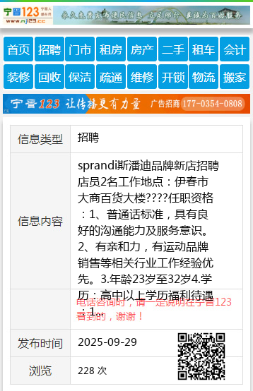 sprandi斯潘迪品牌新店招聘店员2名工作地点:伊春市大商百货大楼????任职资格:1、普通话标准,具有良好的沟通能力及服务意识。2、有亲和力,有运动品牌销售等相关行业工作经验优先。3.年龄23岁至32岁4.学历:高中以上学历福利待遇:1、底薪+提成+五险+岗位津贴+店效津贴(4000~8000上不封顶)联系电话:18045118969非常期待你的加入媚女士13945882016 【电话咨询时,请一定说明在伊春信息网看到的,谢谢!】 |