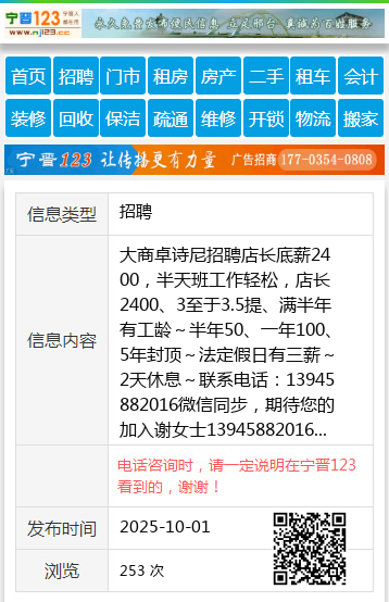 大商卓诗尼招聘店长底薪2400,半天班工作轻松,店长2400、3至于3.5提、满半年有工龄~半年50、一年100、5年封顶~法定假日有三薪~2天休息~联系电话:13945882016微信同步,期待您的加入谢女士13945882016 【电话咨询时,请一定说明在伊春信息网看到的,谢谢!】 |