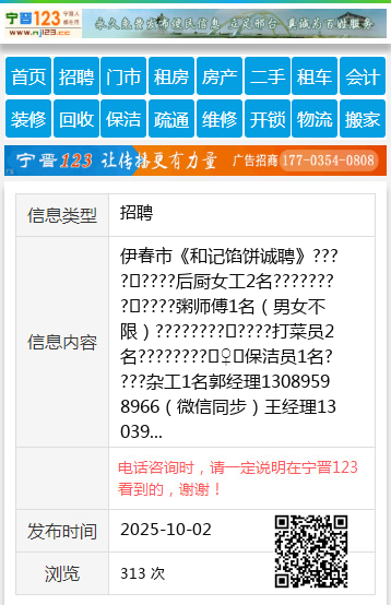 伊春市《和记馅饼诚聘》????????后厨女工2名????????????粥师傅1名(男女不限)????????????打菜员2名????????♀️保洁员1名????杂工1名郭经理13089598966(微信同步)王经理13039661889(微信同步)王13039661889 【电话咨询时,请一定说明在伊春信息网看到的,谢谢!】 |