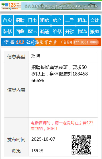 招聘长期宾馆夜班,要求50岁以上,身体健康刘18345866696