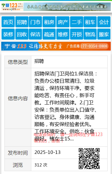 招聘保洁门卫岗位1.保洁员:负责办公楼日常清扫、垃圾清运,保持环境干净。要求能吃苦、有责任心,新手可教。工作时间规律。2.门卫安保:负责单位出入口值守、访客登记。身体健康、沟通顺畅,有安保经验者优先。工作环境安全。供吃:伙食很好。褚女士15246915181 【电话咨询时,请一定说明在伊春信息网看到的,谢谢!】 |