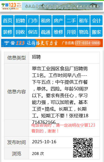 翠峦工业园区食品厂招聘男工1名。工作时间早八点---下午五点;中午提供工作餐,单休。四险。年龄50周岁以下。要求有责任心,学习能力强,可以加班者。基本工资+提成。长期工,长期工。短期工不要!张经理18714762166 【电话咨询时,请一定说明在伊春信息网看到的,谢谢!】 |