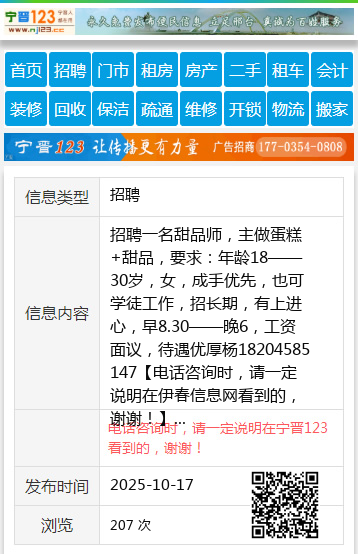 招聘一名甜品师,主做蛋糕+甜品,要求:年龄18——30岁,女,成手优先,也可学徒工作,招长期,有上进心,早8.30——晚6,工资面议,待遇优厚杨18204585147 【电话咨询时,请一定说明在伊春信息网看到的,谢谢!】 |