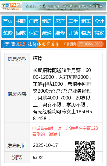 长期招聘配送骑手月薪:6000-12000,入职奖励2000,车辆补贴1000,老骑手回归奖2000元????????业务经理:月薪4000-7000,20岁以上,男女不限,学历不限,有无经验均可陈女士18504581458 【电话咨询时,请一定说明在伊春信息网看到的,谢谢!】 |