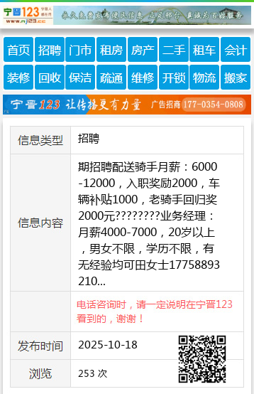 期招聘配送骑手月薪:6000-12000,入职奖励2000,车辆补贴1000,老骑手回归奖2000元????????业务经理:月薪4000-7000,20岁以上,男女不限,学历不限,有无经验均可田女士17758893210 【电话咨询时,请一定说明在伊春信息网看到的,谢谢!】 |