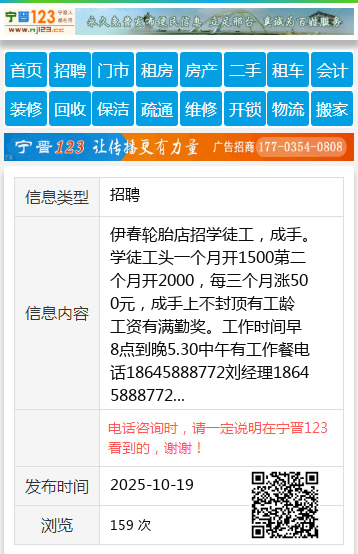 伊春轮胎店招学徒工,成手。学徒工头一个月开1500苐二个月开2000,每三个月涨500元,成手上不封顶有工龄工资有满勤奖。工作时间早8点到晚5.30中午有工作餐电话18645888772刘经理18645888772 【电话咨询时,请一定说明在伊春信息网看到的,谢谢!】 |