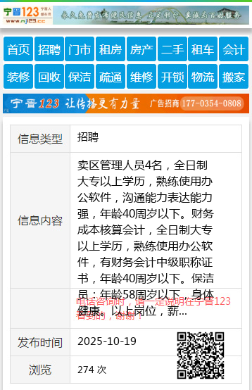 卖区管理人员4名,全日制大专以上学历,熟练使用办公软件,沟通能力表达能力强,年龄40周岁以下。财务成本核算会计,全日制大专以上学历,熟练使用办公软件,有财务会计中级职称证书,年龄40周岁以下。保洁员:年龄58周岁以下,身体健康。以上岗位,薪资面议。咨询电话:15145823600曹女士15145823600 【电话咨询时,请一定说明在伊春信息网看到的,谢谢!】 |