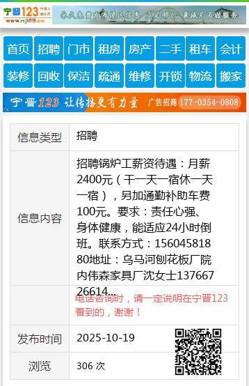招聘锅炉工薪资待遇:月薪2400元(干一天一宿休一天一宿),另加通勤补助车费100元。要求:责任心强、身体健康,能适应24小时倒班。联系方式:15604581880地址:乌马河刨花板厂院内伟森家具厂沈女士13766726614 【电话咨询时,请一定说明在伊春信息网看到的,谢谢!】 |