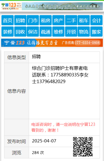 综合门诊招聘护士有意者电话联系:17758890335李女士13796482029