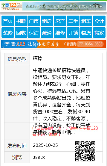 中通快递长期招聘快递员,投柜员。要求男女不限,年龄体力够就行,心细,责任心强。待遇电话联系。另有多个成熟驿站出兑,地理位置优异,设备齐全,每天到货量1000左右,发货30-40件,收入稳定,不愁客源,带有屋内设备,接手能干就是挣钱。联系电话:13114587976吴先生17758895804 【电话咨询时,请一定说明在伊春信息网看到的,谢谢!】 |