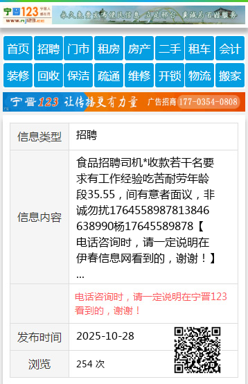 食品招聘司机*收款若干名要求有工作经验吃苦耐劳年龄段35.55,间有意者面议,非诚勿扰1764558987813846638990杨17645589878 【电话咨询时,请一定说明在伊春信息网看到的,谢谢!】 |