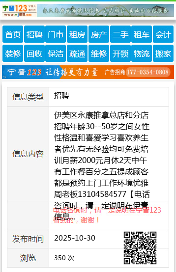 伊美区永康推拿总店和分店招聘年龄30--50岁之间女性性格温和喜爱学习喜欢养生者优先有无经验均可免费培训月薪2000元月休2天中午有工作餐百分之五提成顾客都是预约上门工作环境优雅周老板13104584577 【电话咨询时,请一定说明在伊春信息网看到的,谢谢!】 |
