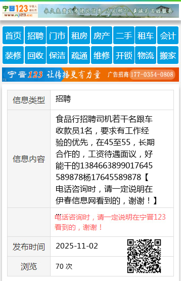 食品行招聘司机若干名跟车收款员1名,要求有工作经验的优先,在45至55,长期合作的,工资待遇面议,好能干的1384663899017645589878杨17645589878 【电话咨询时,请一定说明在伊春信息网看到的,谢谢!】 |