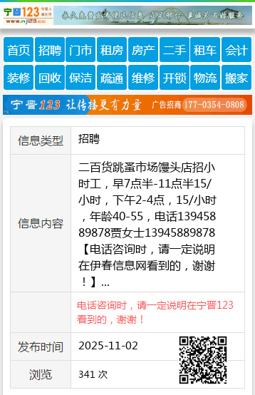 二百货跳蚤市场馒头店招小时工,早7点半-11点半15/小时,下午2-4点,15/小时,年龄40-55,电话13945889878贾女士13945889878 【电话咨询时,请一定说明在伊春信息网看到的,谢谢!】 |