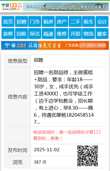 招聘一名甜品师,主做蛋糕+甜品,要求:年龄18——30岁,女,成手优先(成手工资4000➕,也可学徒工作(边干边学包教会,招长期,有上进心,早8.30——晚6,待遇优厚杨18204585147 【电话咨询时,请一定说明在伊春信息网看到的,谢谢!】 |