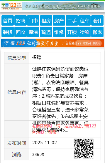 诚聘住家保姆薪资面议岗位职责1.负责日常家务:房屋清洁、衣物洗涤晾晒、餐具清洗消毒,保持家居整洁有序;2.照料家庭成员饮食:根据口味偏好与营养需求,合理搭配三餐,擅长家常菜烹饪者优先;3.完成雇主安排的其他合理家务事宜。任职要求1.年龄45-55岁,身体健康,无不良嗜好,持有健康证者优先;2.有1年以上相关保姆工作经验,做事细心负责、手脚麻利,注重个人卫生;3.性格温和有耐心,沟通顺畅,无暴力倾向及不良从业记录;4.遵守家庭规则,爱护财物,尊重雇主隐私。工资面议.联系电话18045801766朱先生18045801766 【电话咨询时,请一定说明在伊春信息网看到的,谢谢!】 |