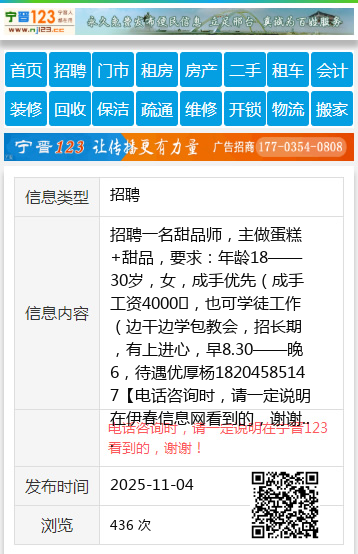 招聘一名甜品师,主做蛋糕+甜品,要求:年龄18——30岁,女,成手优先(成手工资4000➕,也可学徒工作(边干边学包教会,招长期,有上进心,早8.30——晚6,待遇优厚杨18204585147 【电话咨询时,请一定说明在伊春信息网看到的,谢谢!】 |