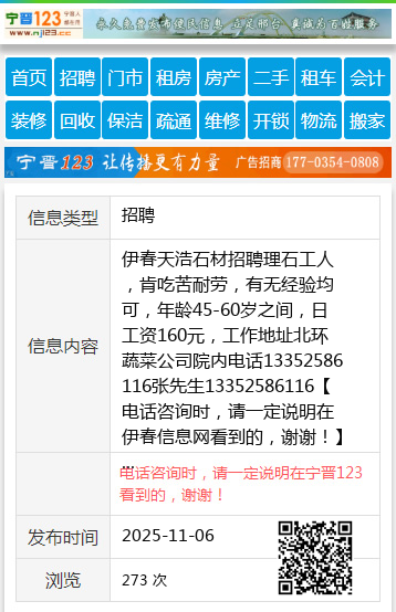 伊春天浩石材招聘理石工人,肯吃苦耐劳,有无经验均可,年龄45-60岁之间,日工资160元,工作地址北环蔬菜公司院内电话13352586116张先生13352586116 【电话咨询时,请一定说明在伊春信息网看到的,谢谢!】 |