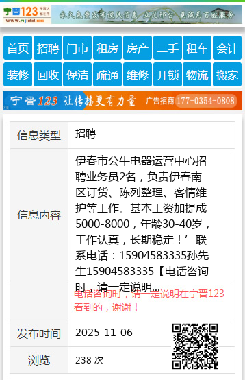 | 防骗提醒: | 伊春信息网(www.yichunba.cn)提醒您:手工活、网络兼职、刷单,都是骗子!凡以各种名义收取费用的都是骗子!找工作是往兜里挣钱,让你往外掏钱的都是骗子!异地招聘请提高警惕,谨防诈骗! |
