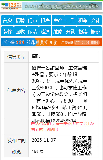 招聘一名甜品师,主做蛋糕+甜品,要求:年龄18——30岁,女,成手优先(成手工资4000➕,也可学徒工作(边干边学包教会,招长期,有上进心,早8.30——晚6也可早9晚9工龄工资3个月涨50,封顶500,忙时有福利补助杨18204585147 【电话咨询时,请一定说明在伊春信息网看到的,谢谢!】 |