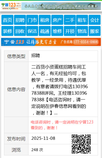二百货小资蛋糕招聘车间工人一名,有无经验均可,包教学,一经录用,待遇优厚,有意者请拨打电话13039678388详询。王经理13039678388 【电话咨询时,请一定说明在伊春信息网看到的,谢谢!】 |