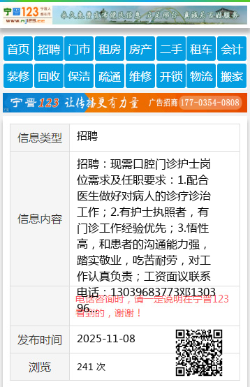 招聘:现需口腔门诊护士岗位需求及任职要求:1.配合医生做好对病人的诊疗诊治工作;2.有护士执照者,有门诊工作经验优先;3.悟性高,和患者的沟通能力强,踏实敬业,吃苦耐劳,对工作认真负责;工资面议联系电话:13039683773邓13039683773 【电话咨询时,请一定说明在伊春信息网看到的,谢谢!】 |