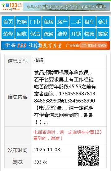 食品招聘司机跟车收款员,若干名要求男士有工作经验吃苦耐劳年龄段45.55之前有意者面议,1764558987813846638990杨13846638990 【电话咨询时,请一定说明在伊春信息网看到的,谢谢!】 |