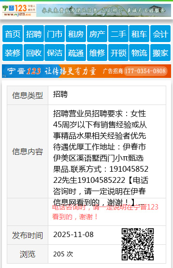 招聘营业员招聘要求:女性45周岁以下有销售经验或从事精品水果相关经验者优先待遇优厚工作地址:伊春市伊美区溪语墅西门小π甄选果品.联系方式:19104585222先生19104585222 【电话咨询时,请一定说明在伊春信息网看到的,谢谢!】 |