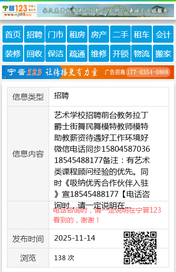 艺术学校招聘前台教务拉丁爵士街舞民舞模特教师模特助教薪资待遇好工作环境好微信电话同步1580458703618545488177备注:有艺术类课程顾问经验的优先。同时《吸纳优秀合作伙伴入驻》宣18545488177 【电话咨询时,请一定说明在伊春信息网看到的,谢谢!】 |