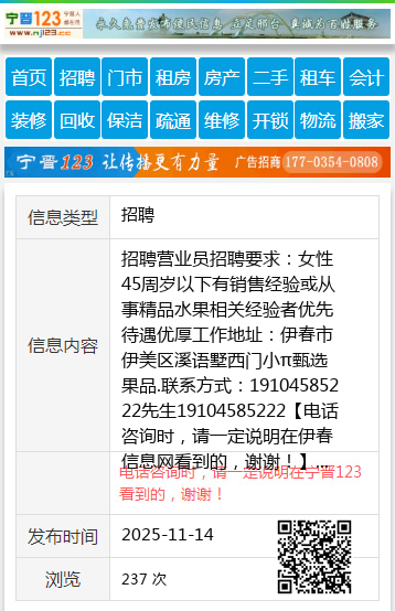 招聘营业员招聘要求:女性45周岁以下有销售经验或从事精品水果相关经验者优先待遇优厚工作地址:伊春市伊美区溪语墅西门小π甄选果品.联系方式:19104585222先生19104585222 【电话咨询时,请一定说明在伊春信息网看到的,谢谢!】 |