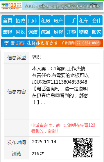 本人男,C1驾照.工作热情.有责任心.有需要的老板可以加我微信11113804853848