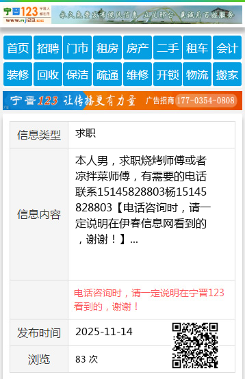 本人男,求职烧烤师傅或者凉拌菜师傅,有需要的电话联系15145828803杨15145828803