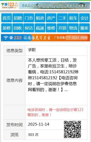 本人想找零工活,日结,发广告,家里收拾卫生,陪诊看病,电话:15145812192琳琳15145812192