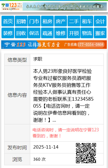 本人男23形象良好医学检验专业有过餐饮服务员酒吧服务员KTV服务员销售等工作经验本人做事认真有责任心需要的老板联系王13234585055 【电话咨询时,请一定说明在伊春信息网看到的,谢谢!】 |
