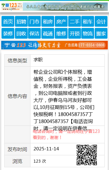 帮企业公司和个体报税,增值税,企业所得税,工会基金,财务报表,资产负债表,到公司电脑报或者到行政大厅,伊春乌马河友好都可以,10月征期到15号,公司们快报税啊!18004587357丁丁18004587357 【电话咨询时,请一定说明在伊春信息网看到的,谢谢!】 |