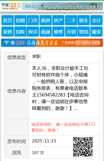 本人36,求职会计能手工也可财务软件做个体,小规模,一般纳税人账,以及申报税务报表,有意者电话联系王15694582283 【电话咨询时,请一定说明在伊春信息网看到的,谢谢!】 |