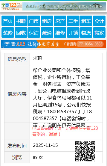 帮企业公司和个体报税,增值税,企业所得税,工会基金,财务报表,资产负债表,到公司电脑报或者到行政大厅,伊春乌马河都可以,11月征期到15号,公司们快报税啊!18004587357丁丁18004587357 【电话咨询时,请一定说明在伊春信息网看到的,谢谢!】 |