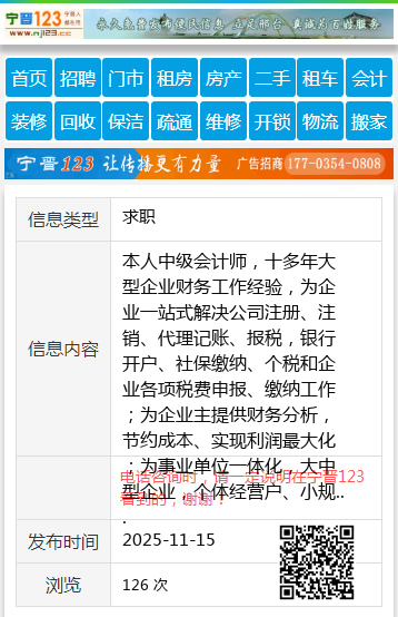 本人中级会计师,十多年大型企业财务工作经验,为企业一站式解决公司注册、注销、代理记账、报税,银行开户、社保缴纳、个税和企业各项税费申报、缴纳工作;为企业主提供财务分析,节约成本、实现利润最大化;为事业单位一体化,大中型企业,个体经营户、小规模纳税人、一般纳税人提供规范化财务管理和代理记账服务,合理合归节税,杜绝呆账、乱账,实现财务管理省心,工作认真负责,有需要可以联系,竭诚为您服务。刘会计18249892696 【电话咨询时,请一定说明在伊春信息网看到的,谢谢!】 |