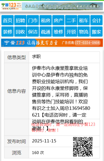 伊春市内永康堂推拿就业培训中心是伊春市内独有的免费职业技能培训机构,我们开设的有永康堂修脚师,保健推拿师,采耳师,直播销售员等热门技能培训!欢迎有识之士加入周总13694580621 【电话咨询时,请一定说明在伊春信息网看到的,谢谢!】 |