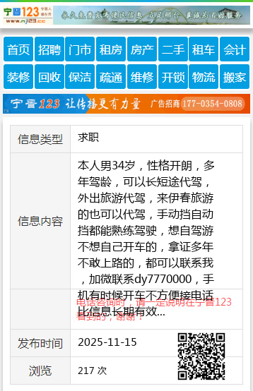 本人男34岁,性格开朗,多年驾龄,可以长短途代驾,外出旅游代驾,来伊春旅游的也可以代驾,手动挡自动挡都能熟练驾驶,想自驾游不想自己开车的,拿证多年不敢上路的,都可以联系我,加微联系dy7770000,手机有时候开车不方便接电话比信息长期有效王先生13351086266 【电话咨询时,请一定说明在伊春信息网看到的,谢谢!】 |
