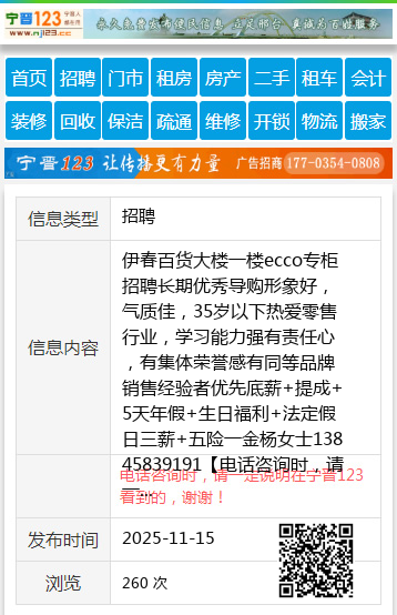 伊春百货大楼一楼ecco专柜招聘长期优秀导购形象好,气质佳,35岁以下热爱零售行业,学习能力强有责任心,有集体荣誉感有同等品牌销售经验者优先底薪+提成+5天年假+生日福利+法定假日三薪+五险一金杨女士13845839191 【电话咨询时,请一定说明在伊春信息网看到的,谢谢!】 |