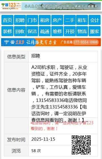 A2司机求职,驾驶证,从业资格证,证件齐全,20多年驾龄,能熟练驾驶各种车辆,铲车,工作认真,爱惜车辆,,有需要的老板请联系,13154583336电话微信同步王先生13154583336 【电话咨询时,请一定说明在伊春信息网看到的,谢谢!】 |