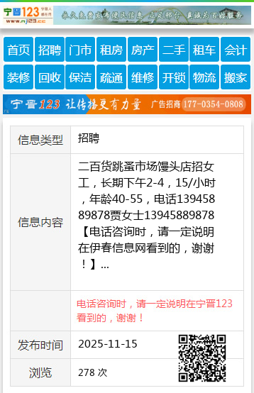 二百货跳蚤市场馒头店招女工,长期下午2-4,15/小时,年龄40-55,电话13945889878贾女士13945889878 【电话咨询时,请一定说明在伊春信息网看到的,谢谢!】 |