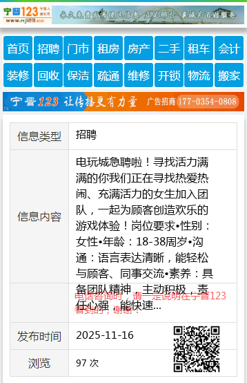 电玩城急聘啦!寻找活力满满的你我们正在寻找热爱热闹、充满活力的女生加入团队,一起为顾客创造欢乐的游戏体验!岗位要求•性别:女性•年龄:18-38周岁•沟通:语言表达清晰,能轻松与顾客、同事交流•素养:具备团队精神,主动积极,责任心强,能快速响应工作需求薪资待遇待遇优厚,具体薪资、福利等细节面议,我们期待给努力的你匹配有竞争力的回报!如果你符合要求,又想在轻松有趣的环境中工作,快来联系我们吧!联系电话:13089622107地址:五一街华辰超市西门3楼梦幻星河电玩城电玩城13089622107 【电话咨询时,请一定说明在伊春信息网看到的,谢谢!】 |